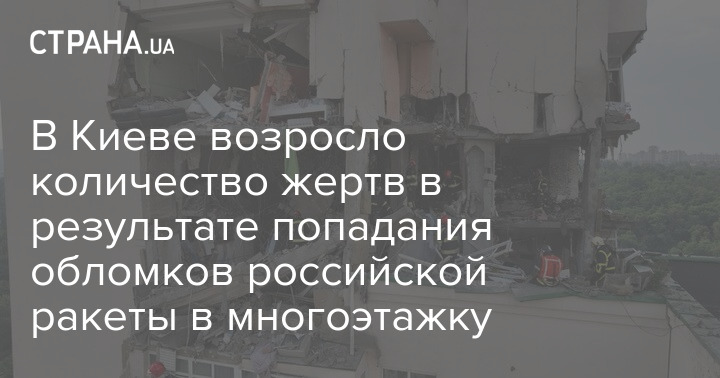 Число жертв внаслідок ракетного удару по київській багатоповерхівці в Солом'янському районі зросло з двох до трьох осіб. Станом на даний момент вісім осіб травмовано. 24 особи врятували співробітники ДСНС. Станом на 8.45 за медичною допомогою звернулося 14 осіб.