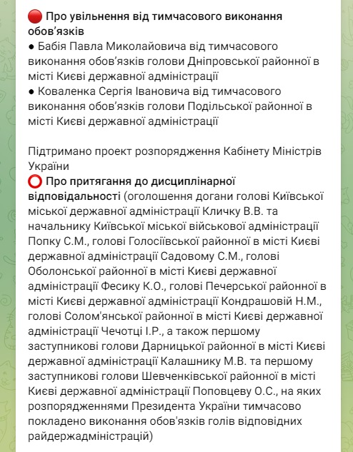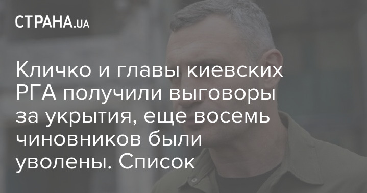 Кличка та голови київських РДА отримали догани за укриття, ще вісім чиновників було звільнено. Перелік