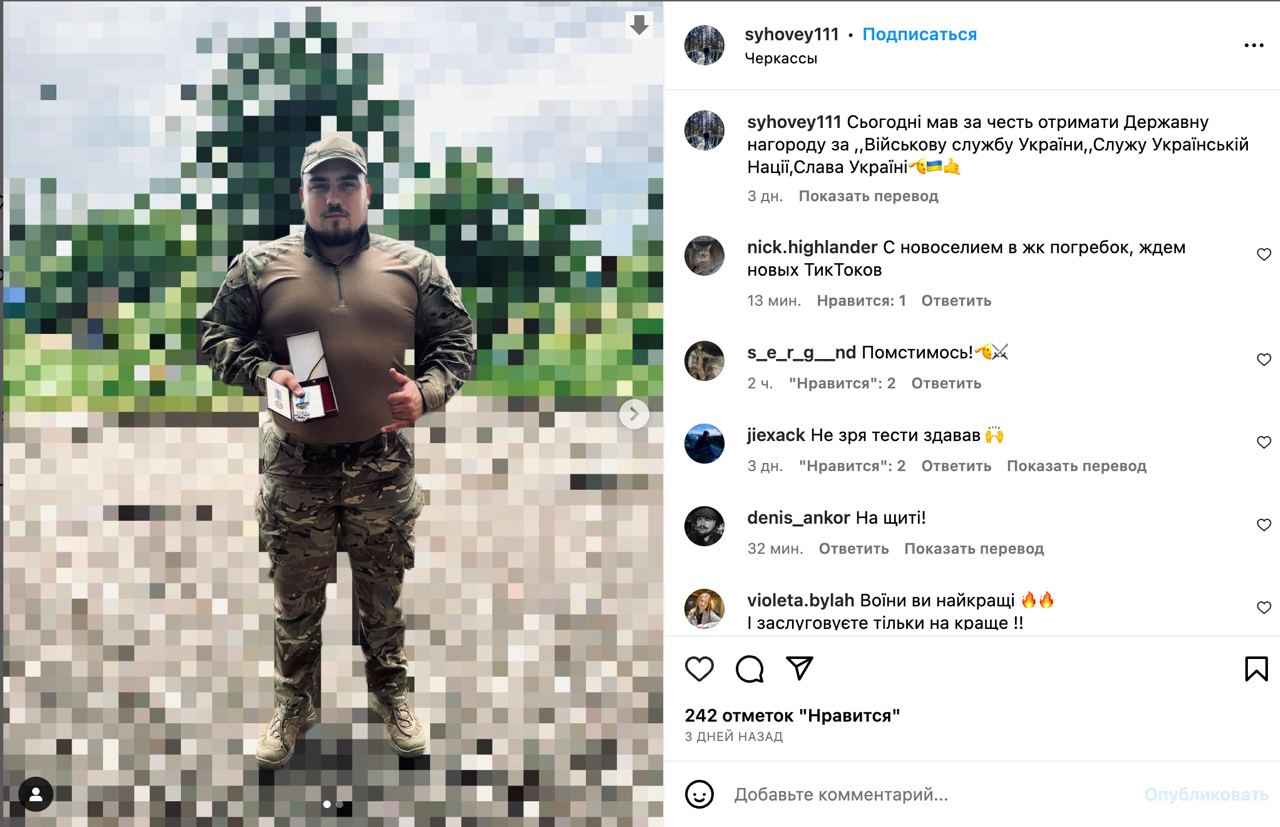 За кілька днів до загибелі його було відзначено державною нагородою за військову службу.