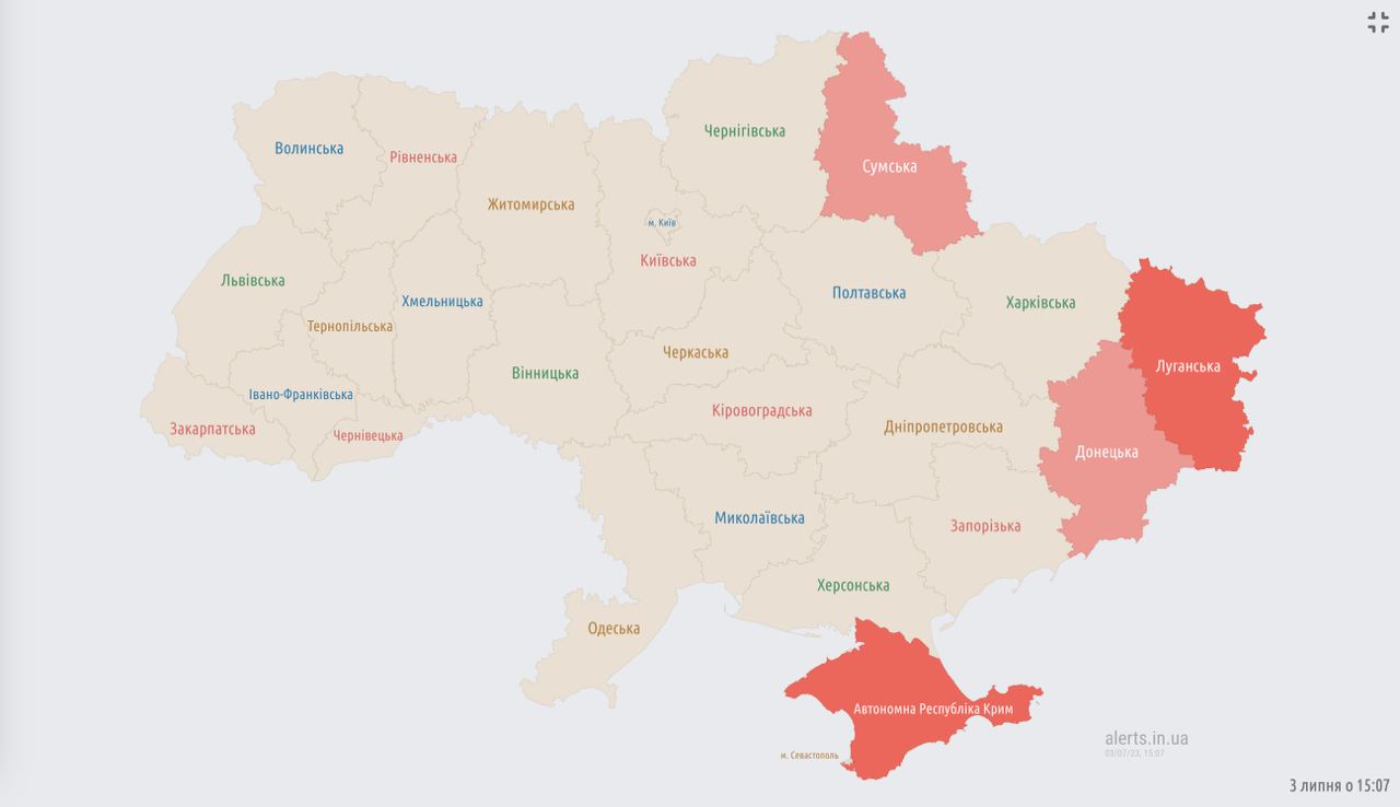 23:04 Повітряна тривога також на Дніпропетровщині. У Херсонській та Миколаївській – відбій.