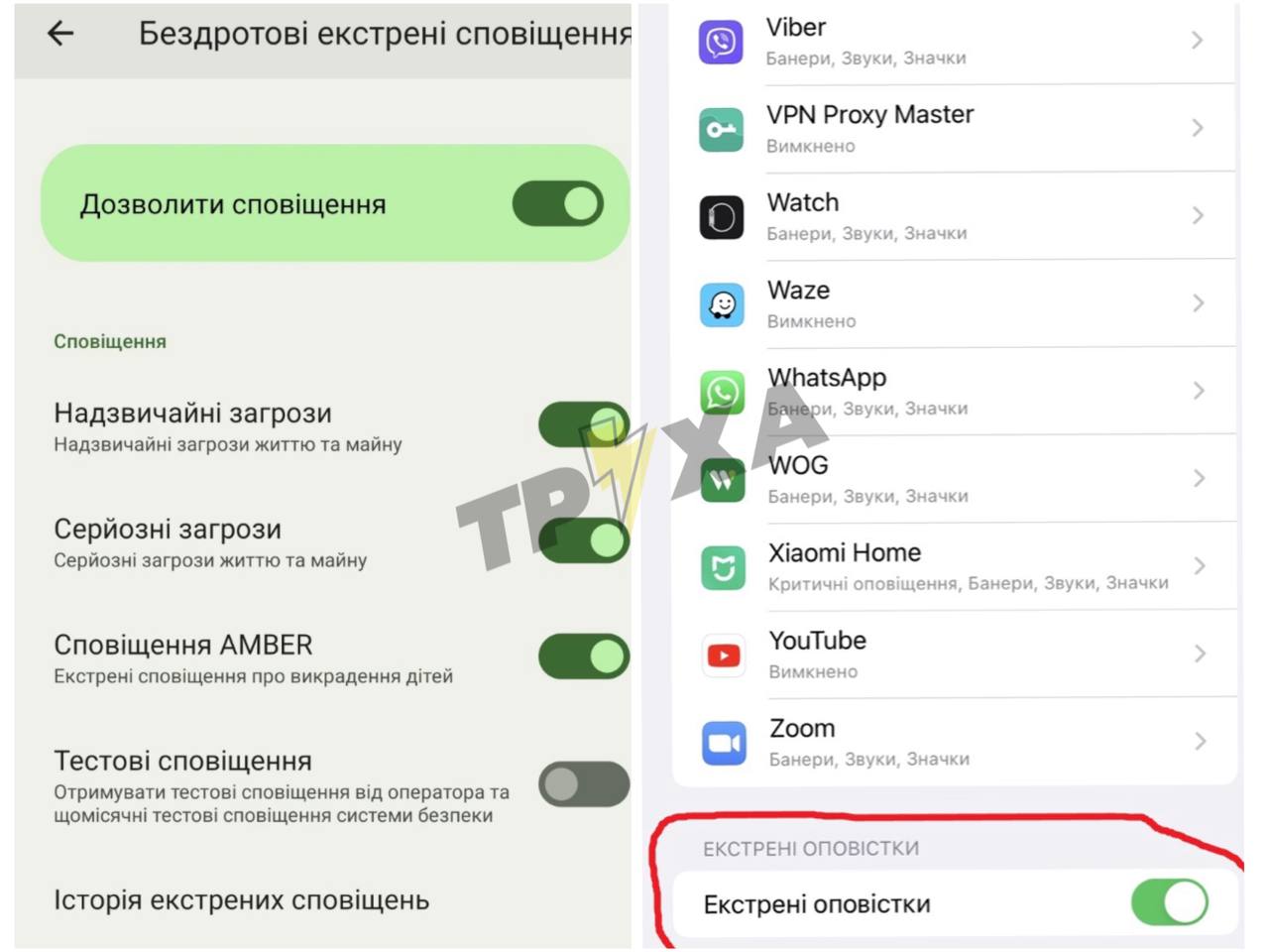 - на IOS: заходьте в "Налаштування", натискаєте "Сповістки", переміщаєте вниз і натискайте вимкнути "Екстрені повідомлення".
