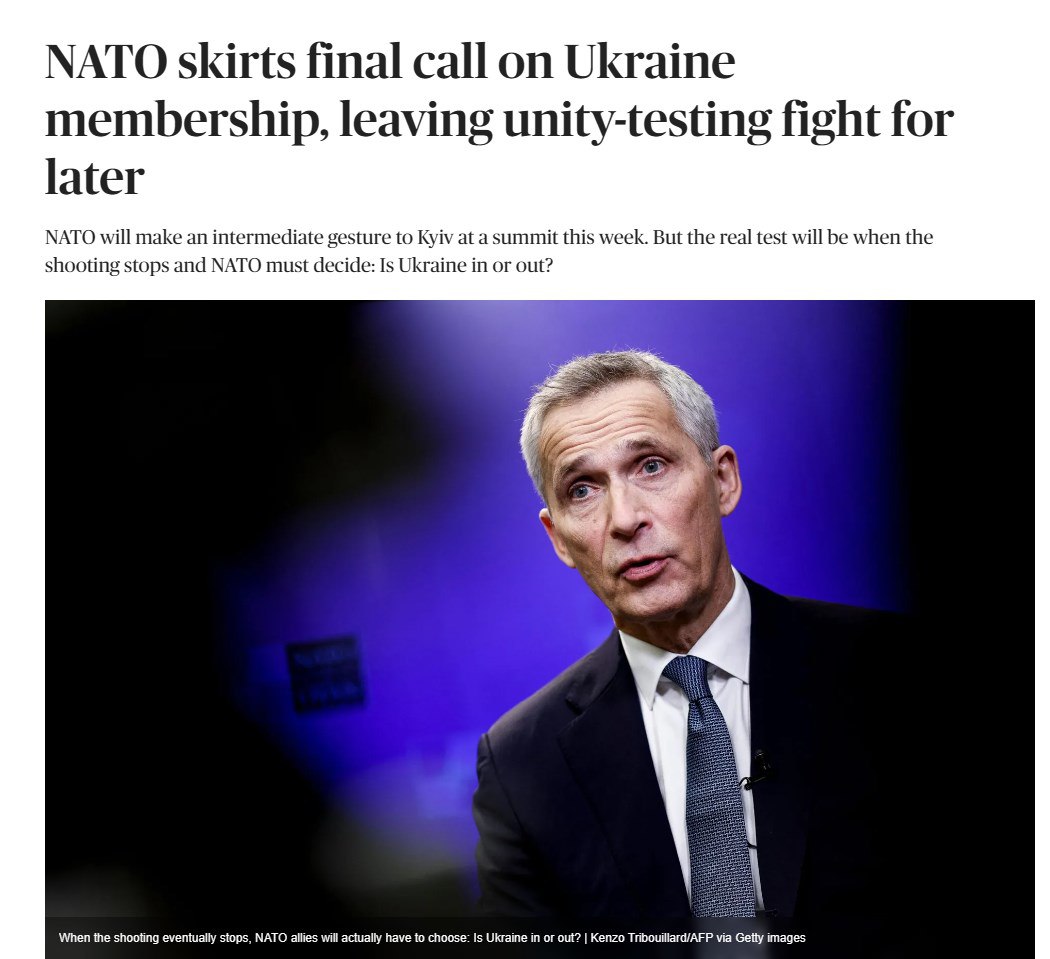 Тим не менш, є група скептиків, які хочуть, щоб до заявки України на членство були застосовані певні умови, сказав високопоставлений центральноєвропейський дипломат. І навіть деякі уряди, які публічно підтримують Україну, мають "невисловлені сумніви". В приватному порядку вони поділяють побоювання США про те, що запрошення Києва приєднатися до Альянсу може підштовхнути Володимира Путіна до крайніх заходів. Інші вважають, що запрошення України до НАТО має бути частиною потенційних мирних переговорів.
