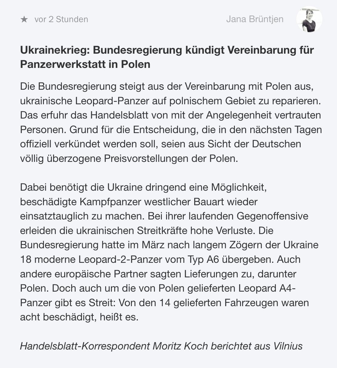 13:55 Німеччина відмовилася від ідеї будівництва в Польщі центру з ремонту переданих Україні танків Leopard, стверджує газета Handelsblatt з посиланням на джерела.