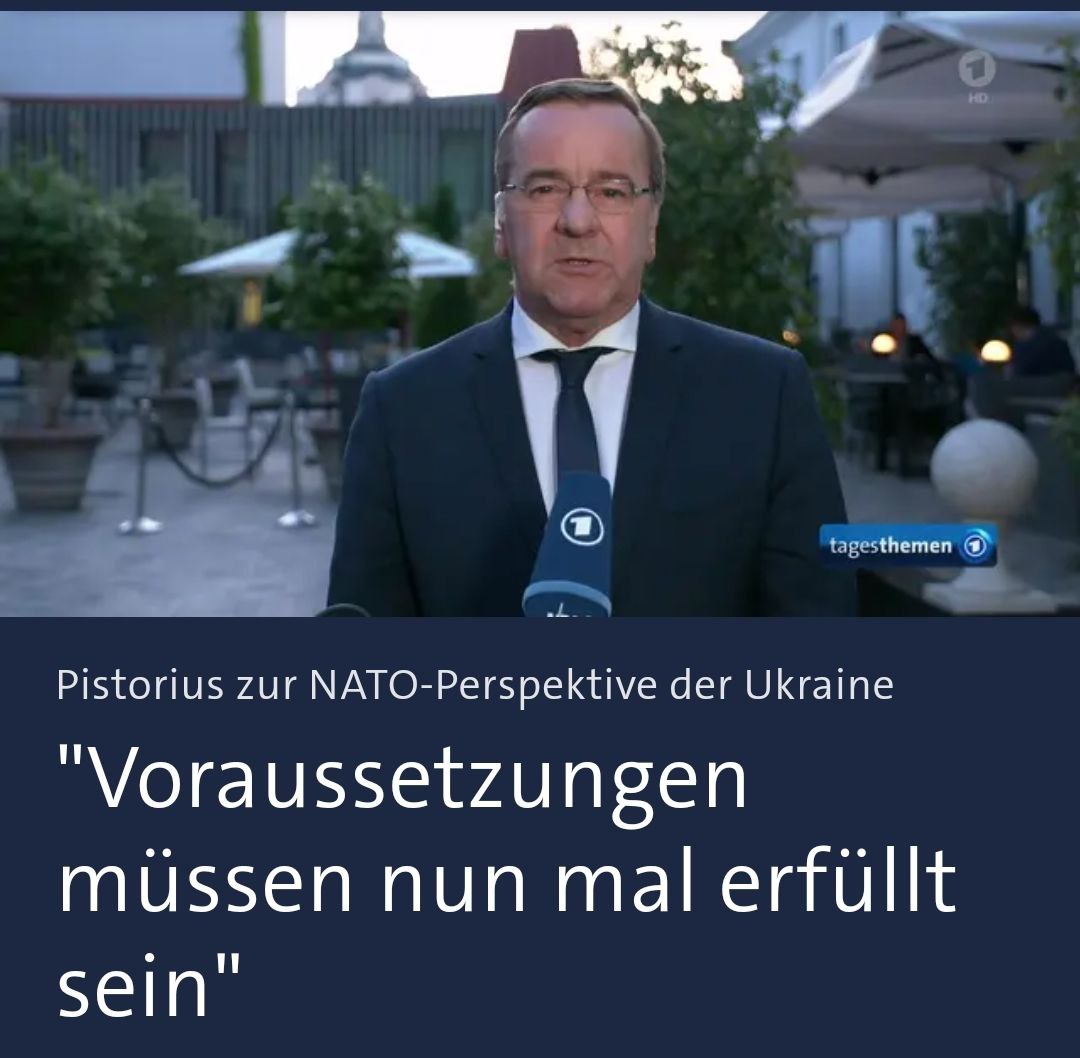 Також Пісторіус заявляє, що приймати Україну до Альянсу доцільно лише у разі настання міцного миру та вирішення питання кордонів.