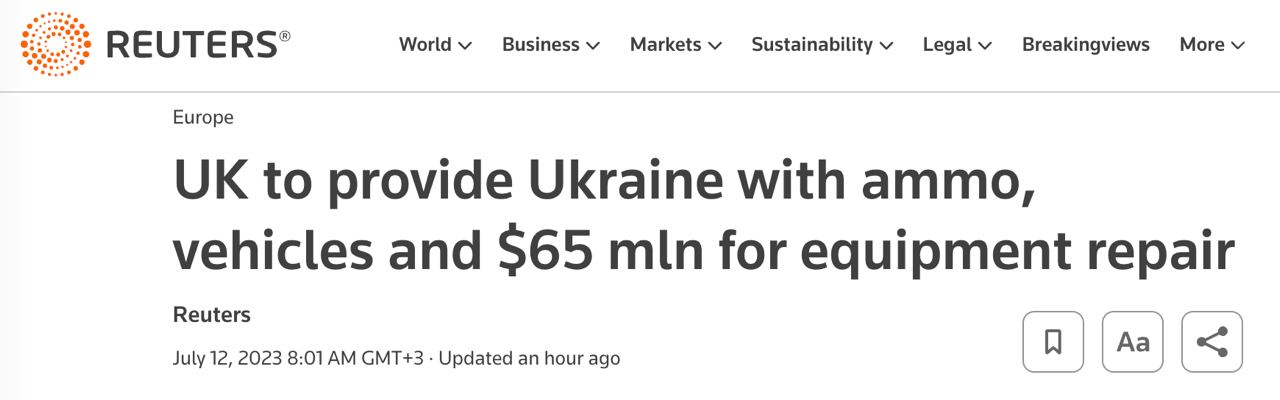 Великобританія надасть Україні новий пакет воєнної допомоги на 65 мільйонів доларів.