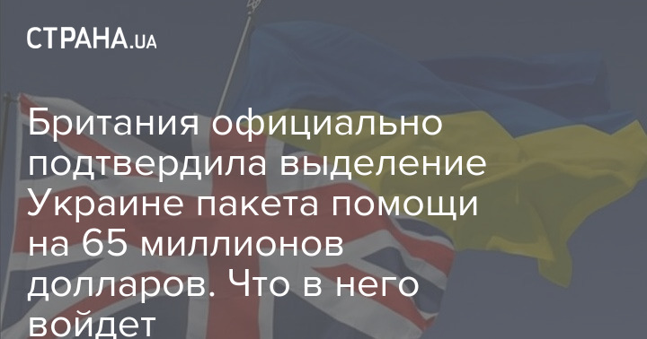 Великобританія підтвердила надання Україні пакету допомоги вартістю 65 мільйонів доларів.