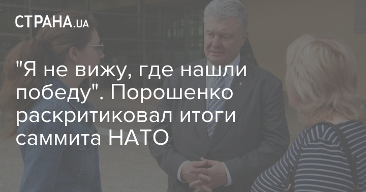 Екс-президент Петро Порошенко розкритикував підсумки саміту НАТО, на якому Україні не озвучили запрошення до НАТО.