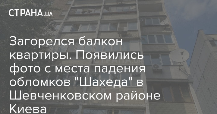 Зайнявся балкон квартири. З'явилися фото з місця падіння уламків "Шахеда" у Шевченківському районі Києва