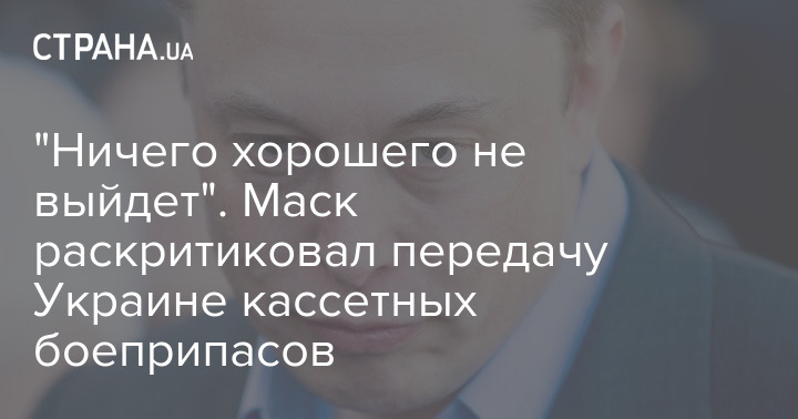 Американський бізнесмен Ілон Маск розкритикував відправку касетних боєприпасів Україні.