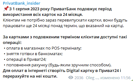 Клієнтам "Приватбанку" протягом найближчих двох років не доведеться перевипускати карти, у яких закінчився термін дії. Період використання всіх карток продовжено на 24 місяці.