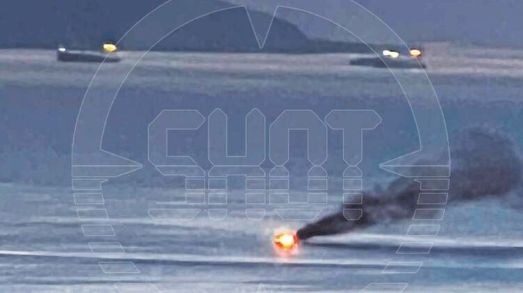Пізніше в Мережі опублікували відео, як повідомляється, як український надводний дрон вражає великий десантний корабель РФ "Оленьогірський гірник".