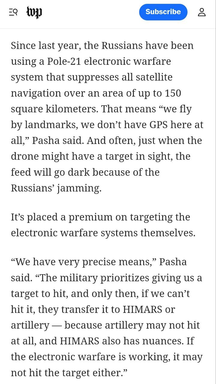 Тому українські військові намагаються спершу шляхом розвідки визначити, де знаходиться установка РЕБ, а потім посилають на неї безпілотник. Якщо тому вдалося вразити антену і тимчасово заглушити РЕБ, то координатами установки потім б'ють "Хаймарсом".