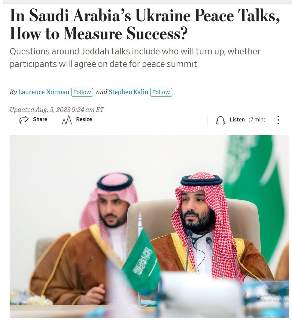 19:38 На саміті у Саудівській Аравії Київ не наполягав на ухваленні своєї формули світу, пише Wall Street Journal.
