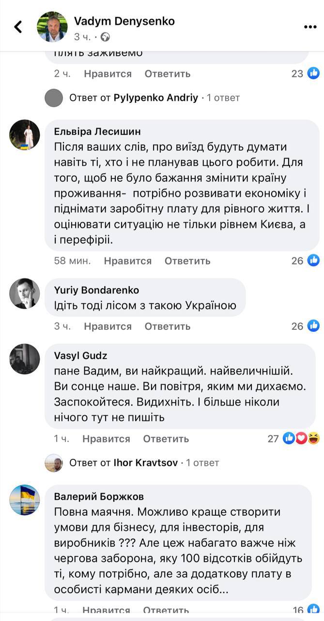 У коментарі під самим постом багато хто також розкритикував пропозицію Денисенка.