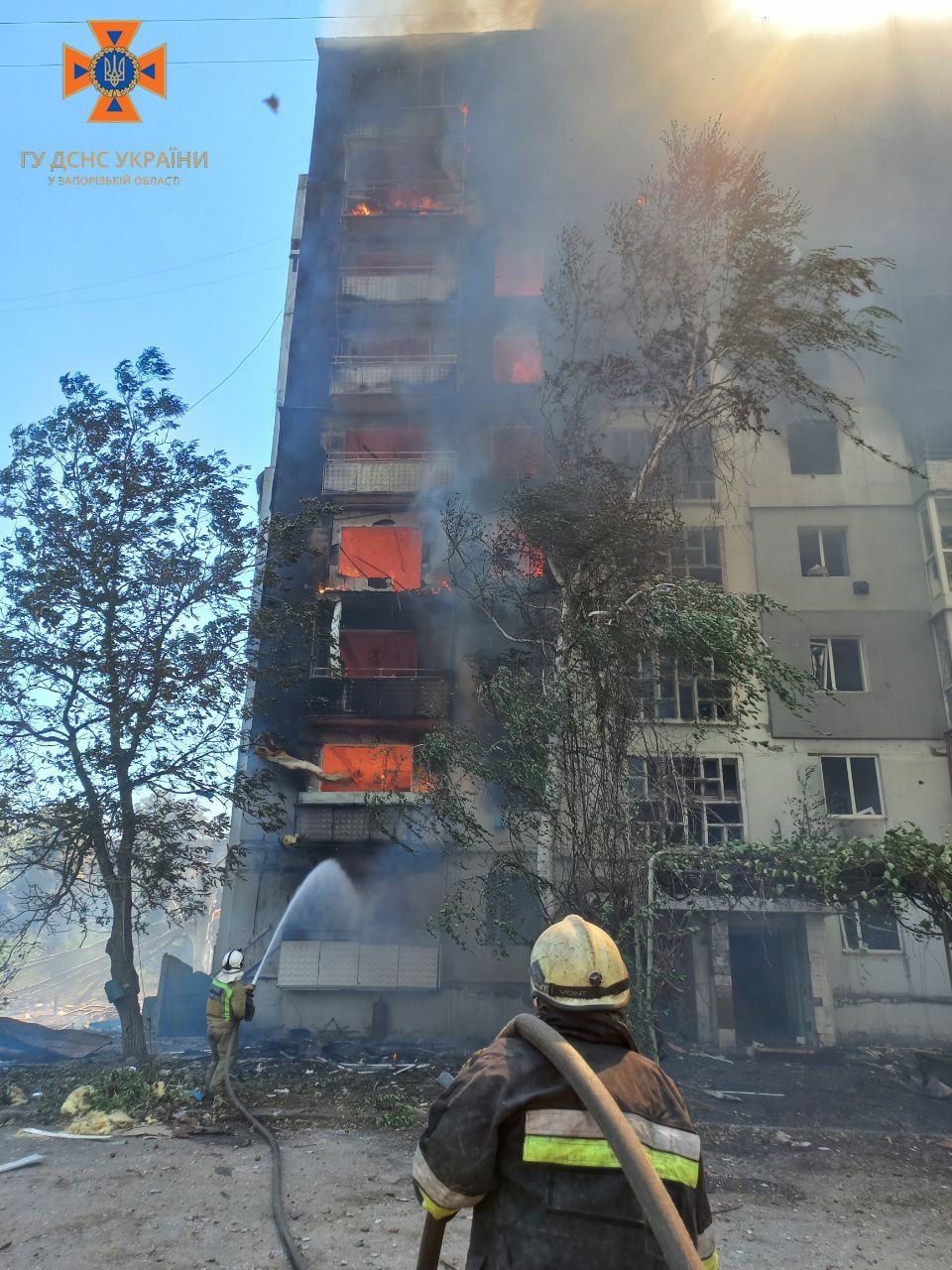 В Оріхові на Запорізькому напрямку від обстрілу спалахнув дев'ятиповерхівка.