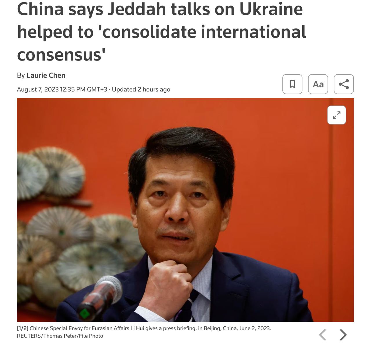 Влада Китаю прокоментувала присвячені Україні переговори, які 5-6 серпня відбулися в Саудівській Аравії.