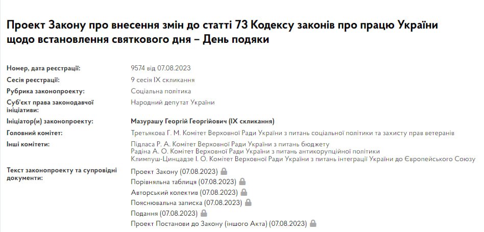 Відповідний законопроект було зареєстровано сьогодні "слугою народу" Георгієм Мазурашом у Верховній Раді.