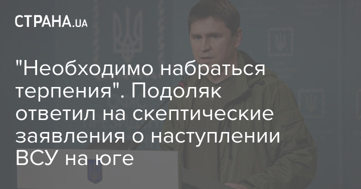 "Необхідно набратися терпіння". Подоляк відповів на скептичні заяви про настання ЗСУ на півдні