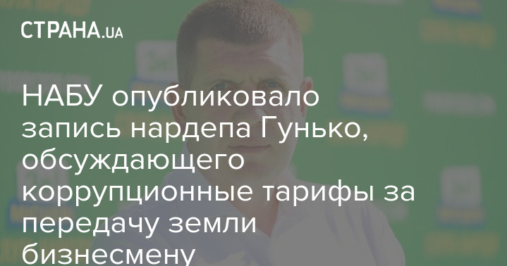 НАБУ опублікувало запис розмови народного депутата від "Слуги народу" Анатолія Гунька, де він обговорює корупційні тарифи за передачу землі в користування бізнесмену.