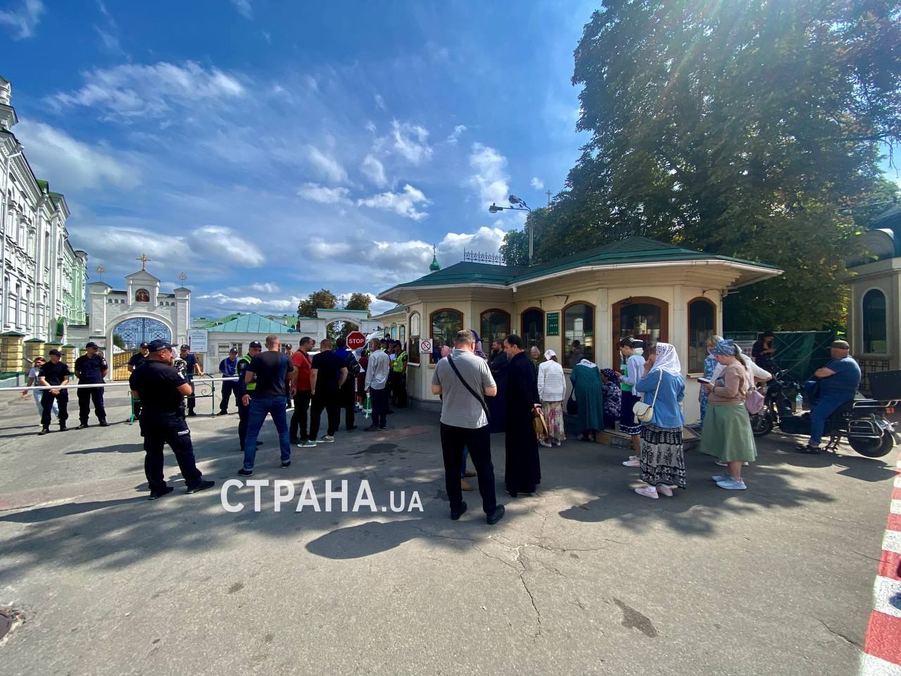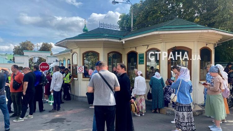 Віруючі УПЦ залишаються молитися під час входу до Лаври. Фото "Країна"