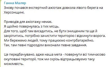 При цьому вона дала зрозуміти, що поки що ЗСУ на лівому березі не закріпилися.