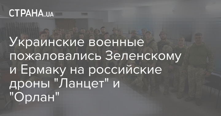 Українські військові поскаржилися Володимиру Зеленському та Андрію Єрмаку на російські БПЛА "Ланцет" та "Орлан".