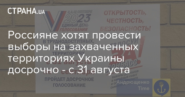На частині захоплених територій України російські "вибори" стартують достроково. Зокрема, вже оголошено такі плани у Донецькій, Запорізькій та Херсонській областях.