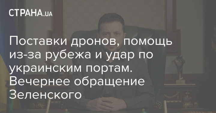 Постачання дронів, допомога з-за кордону та удар по українських портах. Вечірнє звернення Зеленського