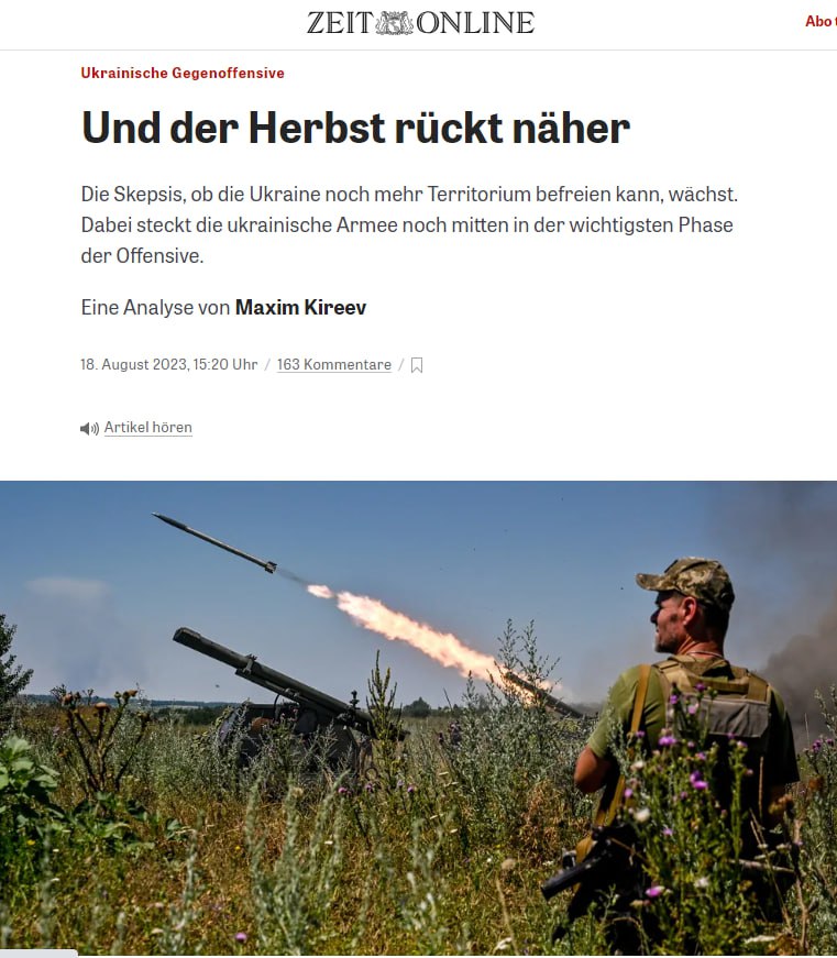 На думку Die Zeit, "ще один фактор, який говорить про швидке досягнення піку наступу, - обмеженість ресурсів України".
