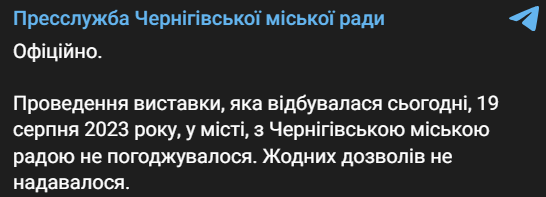 У Чернігівській міській раді стверджують, що не погоджували проведення сьогоднішньої виставки та не давали жодних дозволів.