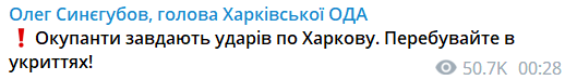 07:50 По Харкову завдають ударів, повідомила ОВА.