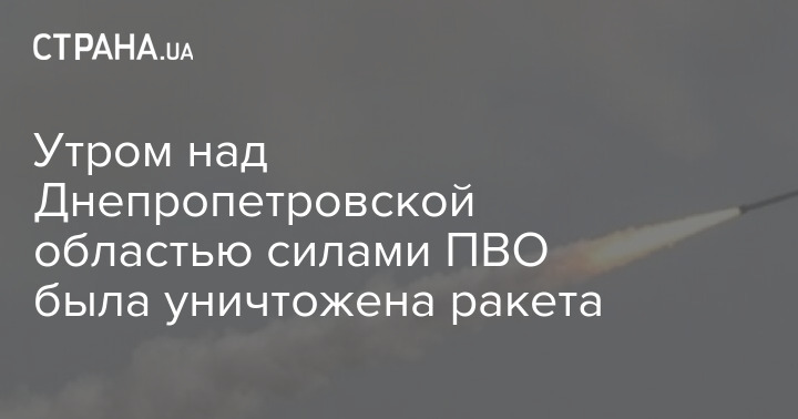 Сьогодні вранці в небі над Дніпропетровською областю силами та засобами ППО було знищено ракету.