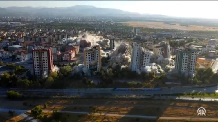У турецькій провінції Малатья вибухами знесли дев'ять 15-поверхових будинків, які стали непридатними для проживання після землетрусу в лютому.