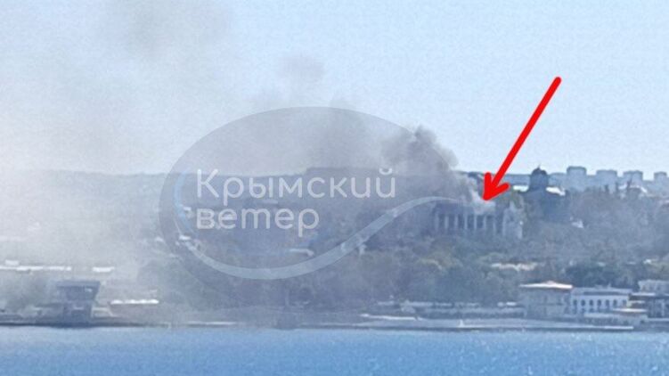 Російські ЗМІ публікують відео з місця прильоту штабом Чорноморського флоту в Севастополі.