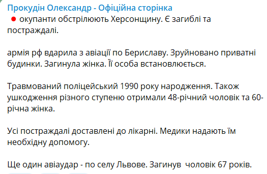 "Російські військові потрапили до житлових кварталів населених пунктів області; банківської установи в Бериславському районі", - написав глава ОВА.