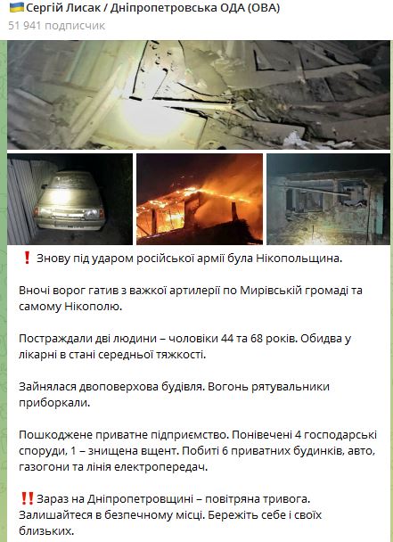 Вночі сили РФ завдали удару по Нікопольському району Дніпропетровської області.