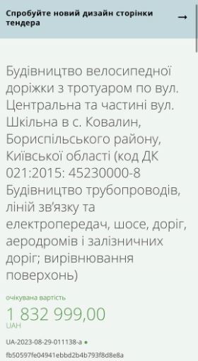 На Київщині в селі Ковалин витратять 1,7 млн грн на будівництво велосипедної доріжки. Примітно, що згідно з Вікіпедією в селі Ковалин проживає трохи більше тисячі осіб.