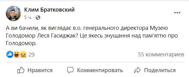 Директор Музею Голодомору Леся Гасіджак подала до суду на блогера-юриста Клима Братковського.