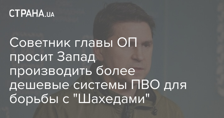 Радник глави Офісу президента Михайло Подоляк закликав Захід виробляти дешевші зенітні системи, оскільки ракети "Patriot", SAMP/T, NASAMS та IRIS-T надто дорогі, щоб збивати ними "Шахеди".
