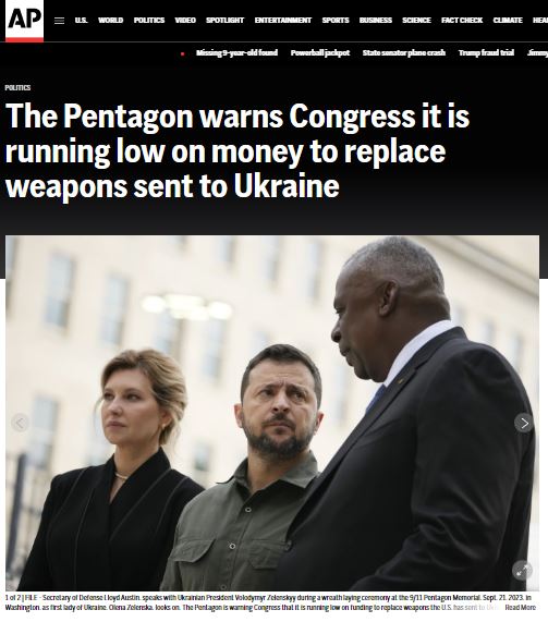 За даними Пентагону, із 25,9 млрд доларів, виділених Конгресом на поповнення військових запасів, що надходять в Україну, залишилося 1,6 млрд. Також США додатково має близько 5,4 млрд доларів для надання зброї та військової техніки зі своїх запасів.
