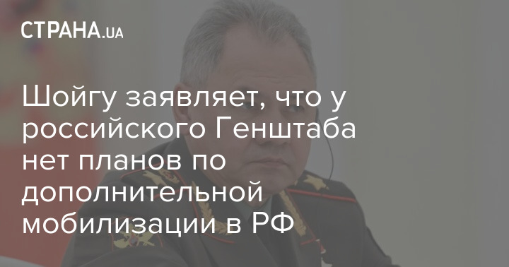 Міністр оборони РФ Сергій Шойгу заявив, що російський Генштаб не має планів щодо додаткової мобілізації в РФ.