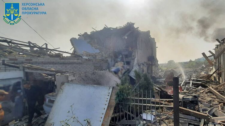 Результат авіаудару по Антонівці. Фото: Херсонська обласна прокуратура