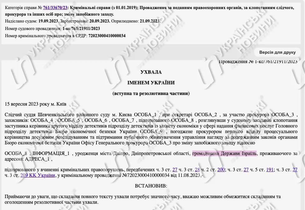 А в ухвалі від 15 вересня - вже громадянином Ізраїлю.
