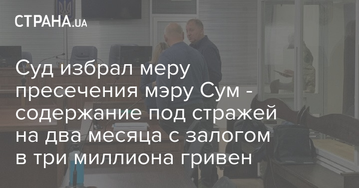 Суд обрав запобіжний захід меру Сум - утримання під вартою на два місяці із заставою в три мільйони гривень