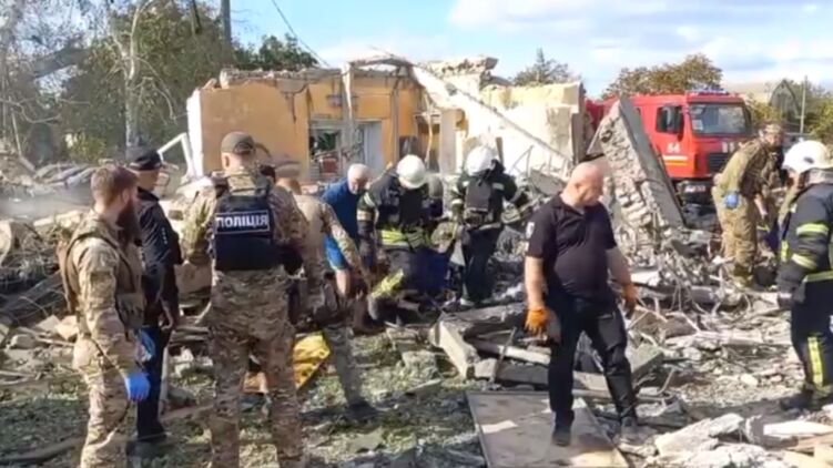 На місці ракетного удару продовжується розбір завалів. Скріншот відео