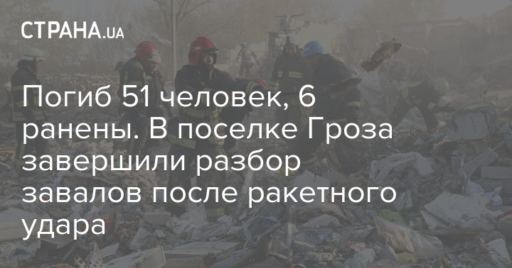 Спікер озвучив остаточні цифри втрат після ракетного удару по селищу: 51 особа загинула, 6 людей поранено. У населеному пункті також серйозно постраждали житлові будинки, які були поблизу місця трагедії.