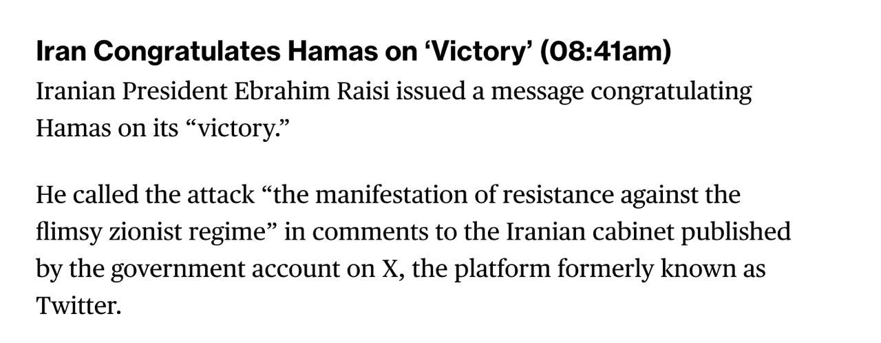 Президент Ірану Ебрагім Раїсі привітав ХАМАС із "перемогою".