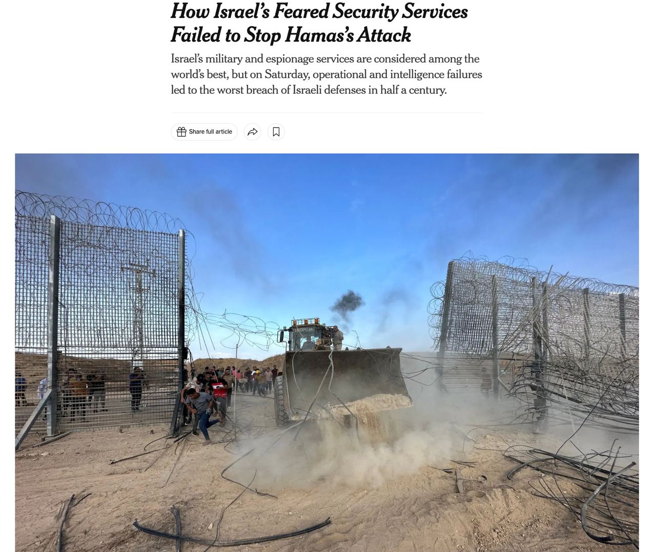 The New York Times розповідає про помилки ізраїльської армії та спецслужб, які уможливили вторгнення ХАМАС.