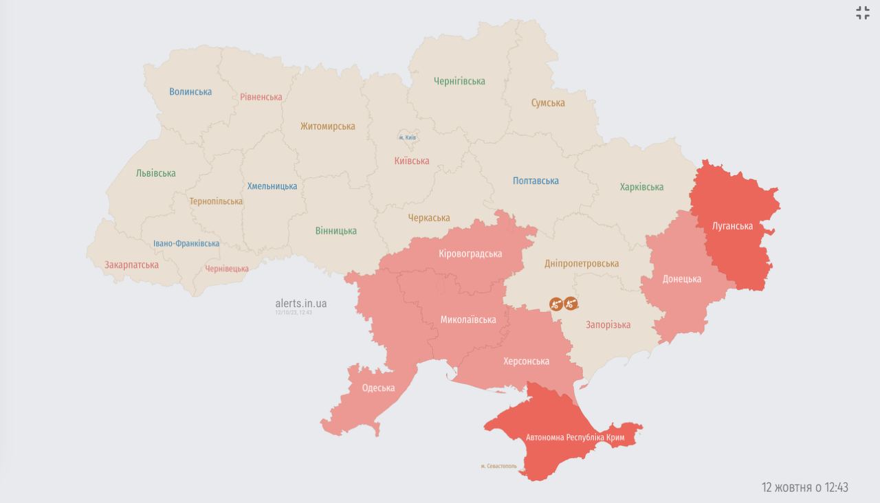 У Херсонській та Запорізькій областях оголошено тривогу.