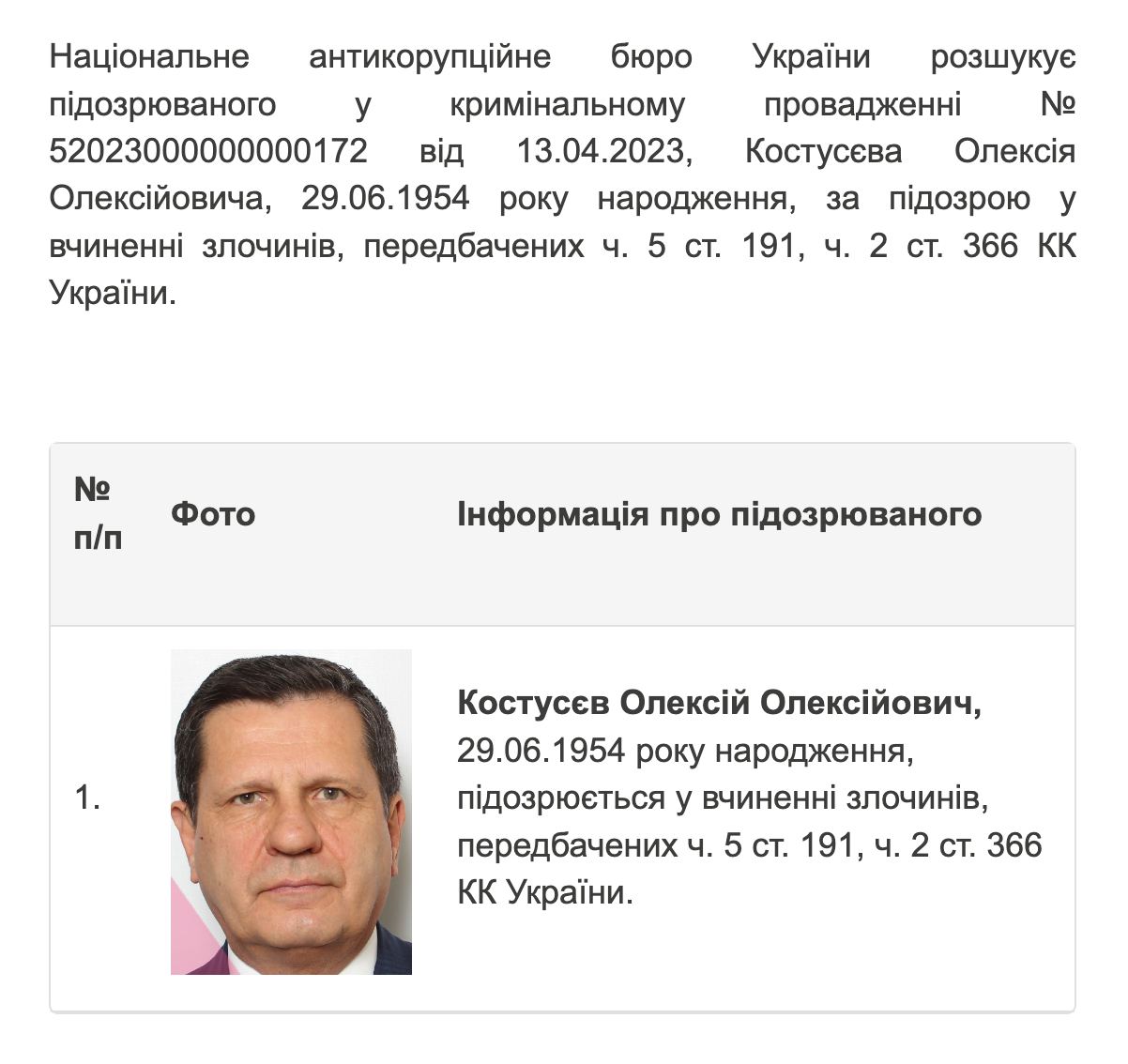 Національне антикорупційне бюро України (НАБУ) оголосило у розшук отця народного депутата з "Європейської солідарності" Олексія Гончаренка, колишнього мера Одеси Олексія Костусєва.